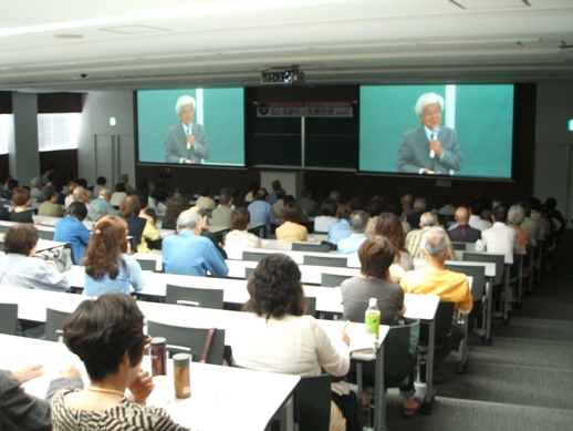 養老氏からは、「老化は生まれる前からすでに始まっている」という話や、「機能を失った目や耳、足などの身体の代替となるような工学的機器を装着して身体的機能を回復させる技術が進んでいる」といった話など、ユーモアを交えながらのわかりやすい説明があり、約270名の参加者は熱心に耳を傾けていました。