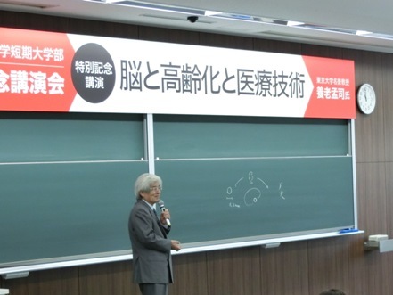 講演は、北海道科学大学有澤準二副学長による挨拶のあと、「バカの壁」などの著書で知られる東京大学名誉教授の養老孟司氏による記念講演「脳と高齢化と医療技術」が行われました。