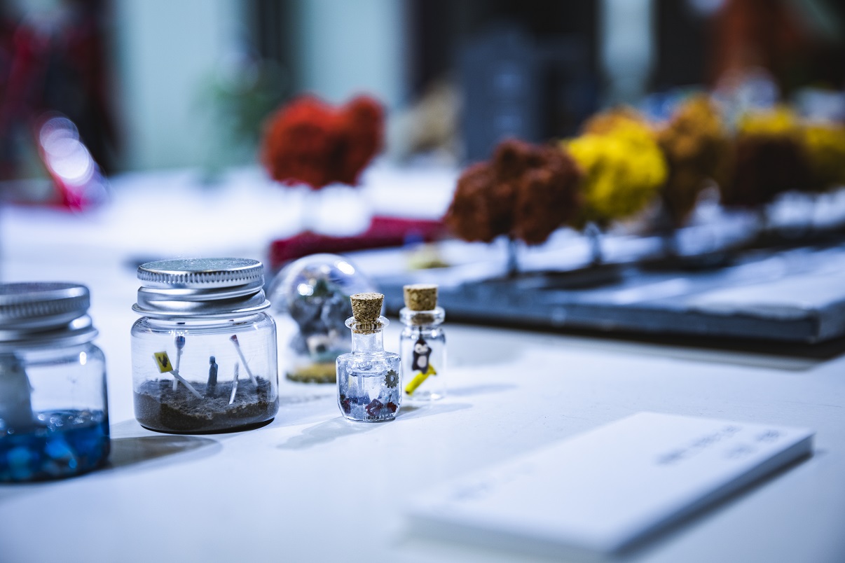 アーティスト、在学生、教職員がコロナ禍で失われつつあったものの大切さを表現した作品を持ち寄りました。