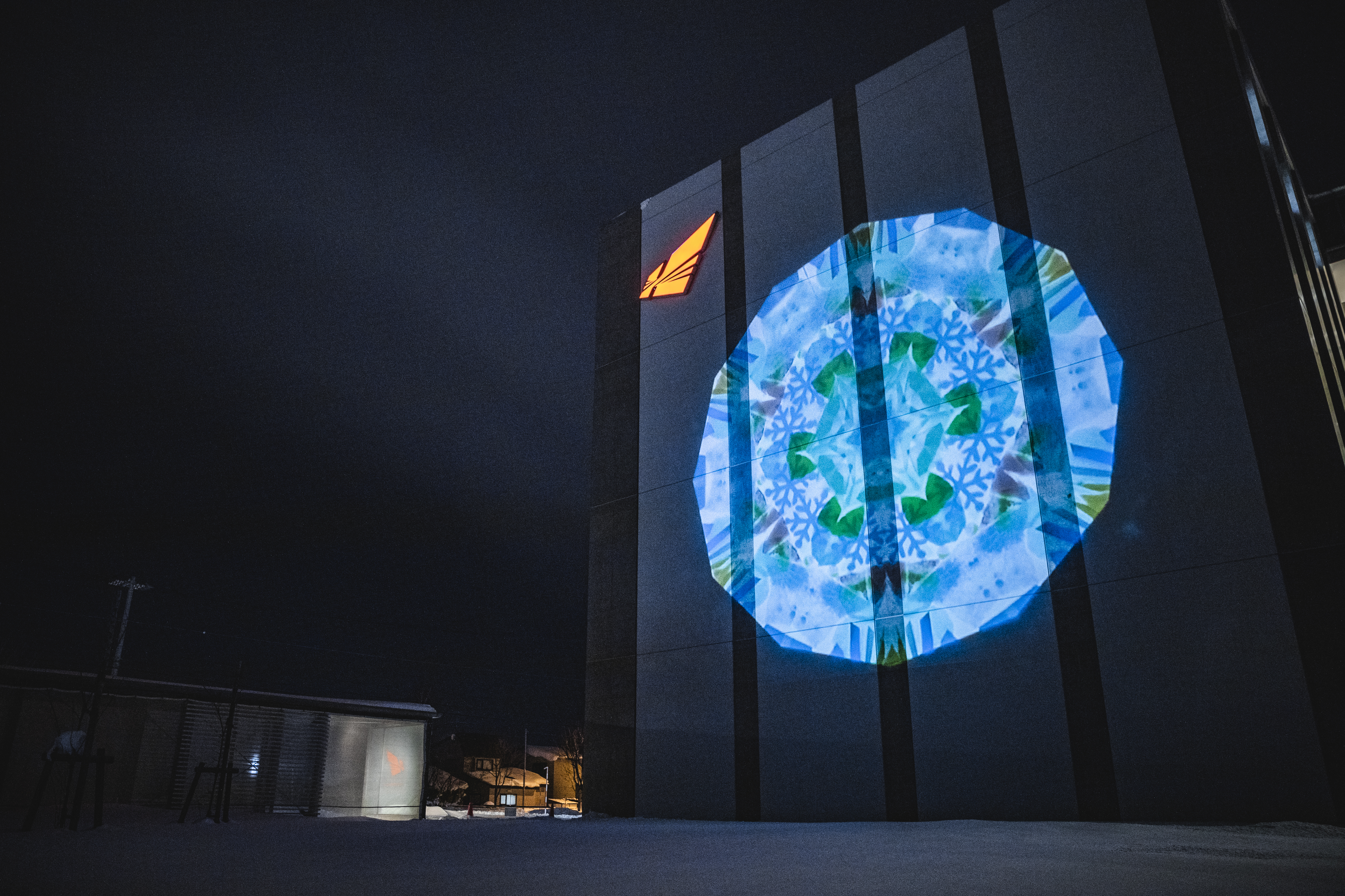 日本を代表する万華鏡作家、依田満・百合子夫妻による投影型万華鏡を校舎壁面に投影します。