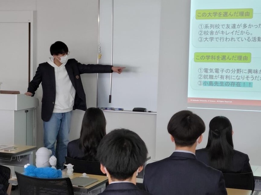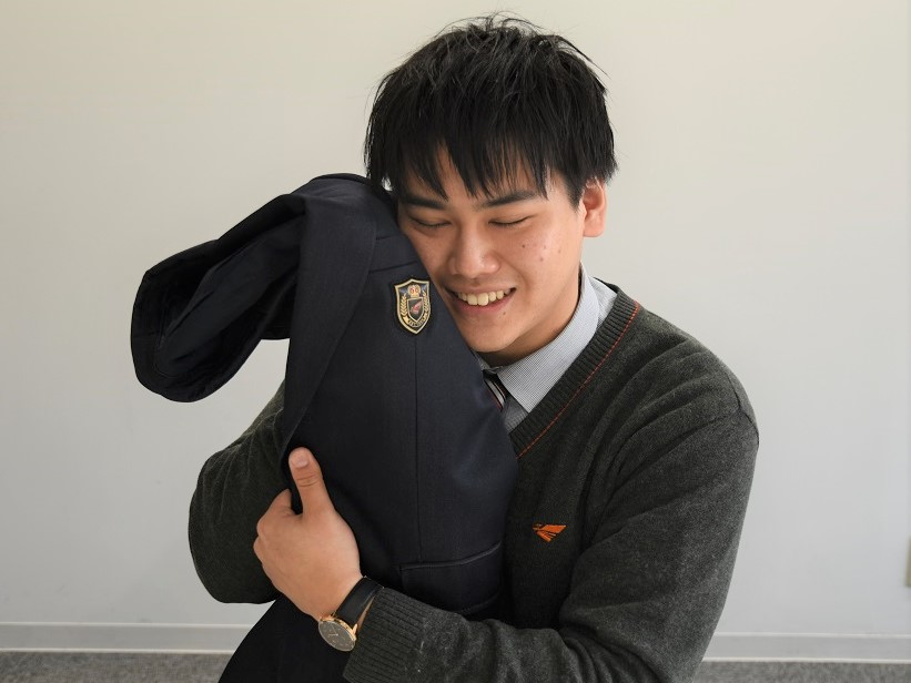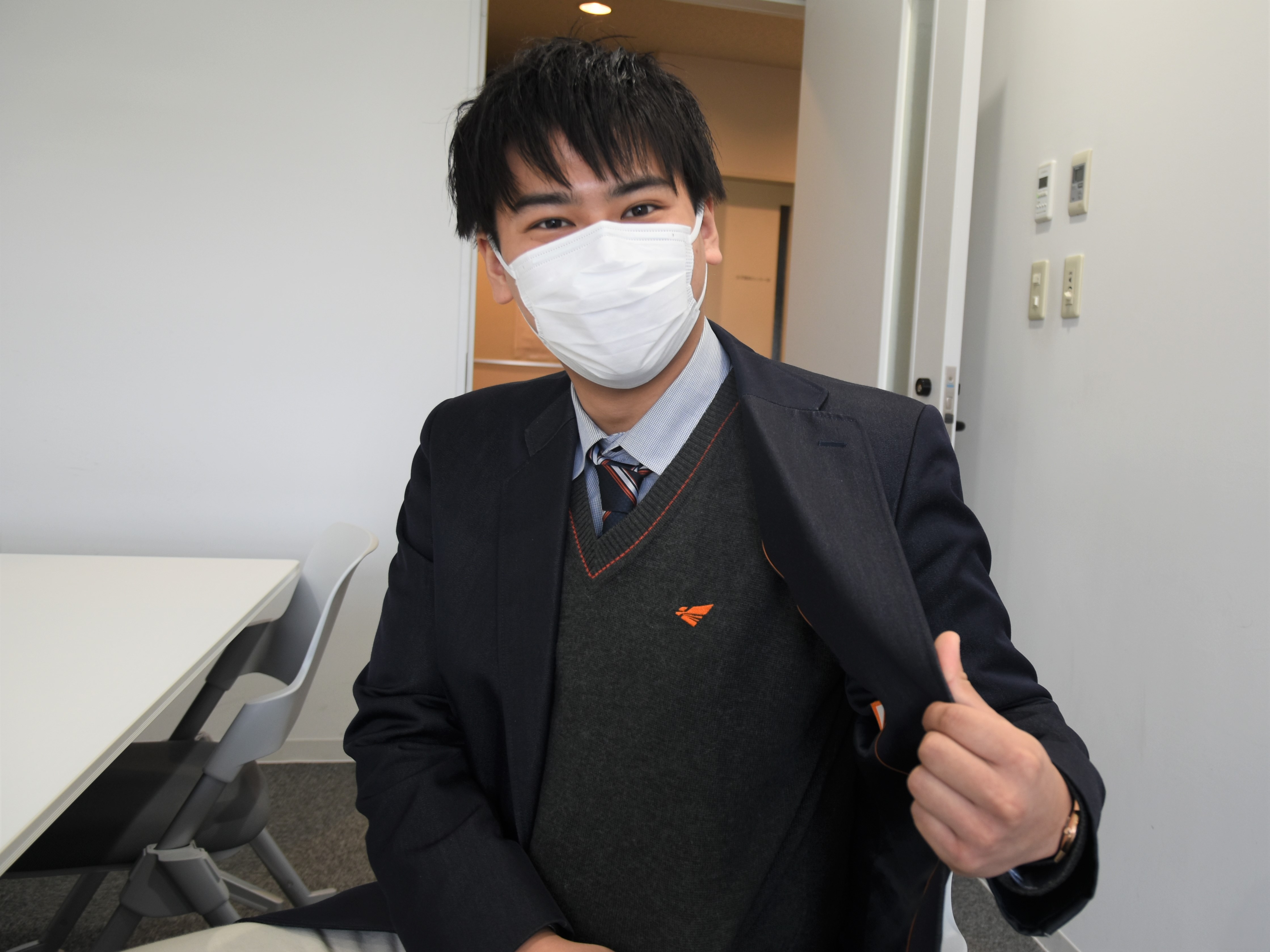 電気電子工学科3年生の船田健太さんは、この制服ブレザーが導入された翌年の2017(平成29)年度に北海道科学大学高等学校へ入学。