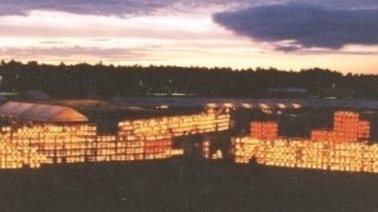 1992(平成4)年7月に行われた第1回では、ゼミ生のコンペによって選ばれた円筒型のちょうちん450個を竿上の構造体に吊るし、祭り会場の中央に飾りました。