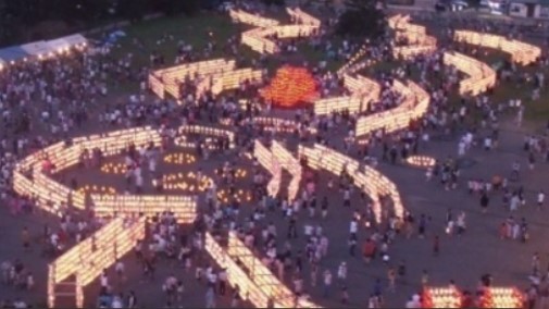 大学生が小学校や児童会館を訪れて子ども達にちょうちんの制作を指導し、当日の夜、そのちょうちんへ一斉に火を灯します。