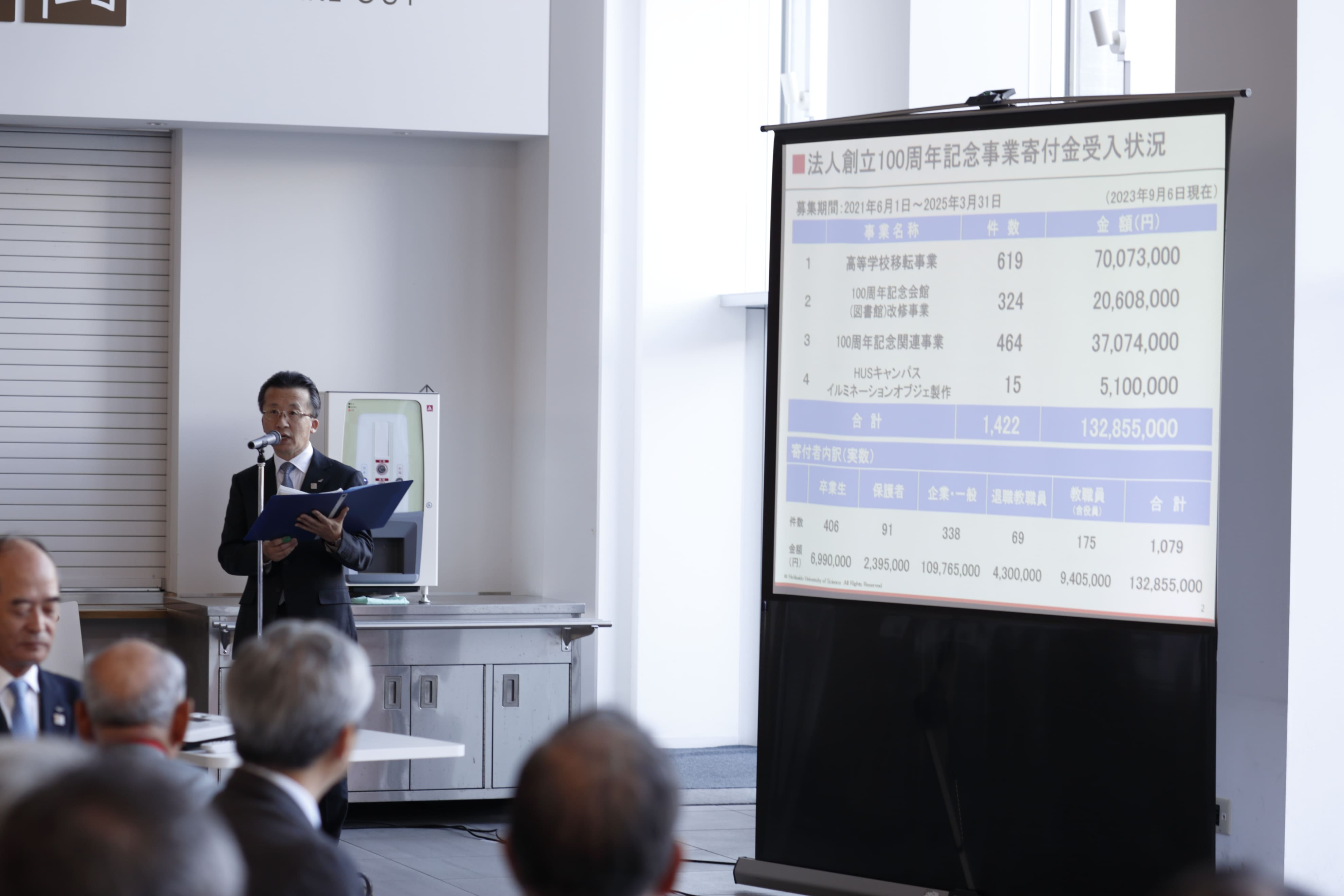 (寄付金顕彰制度の詳細は、https://ed.hus.ac.jp/100th/donation/をご参照ください)