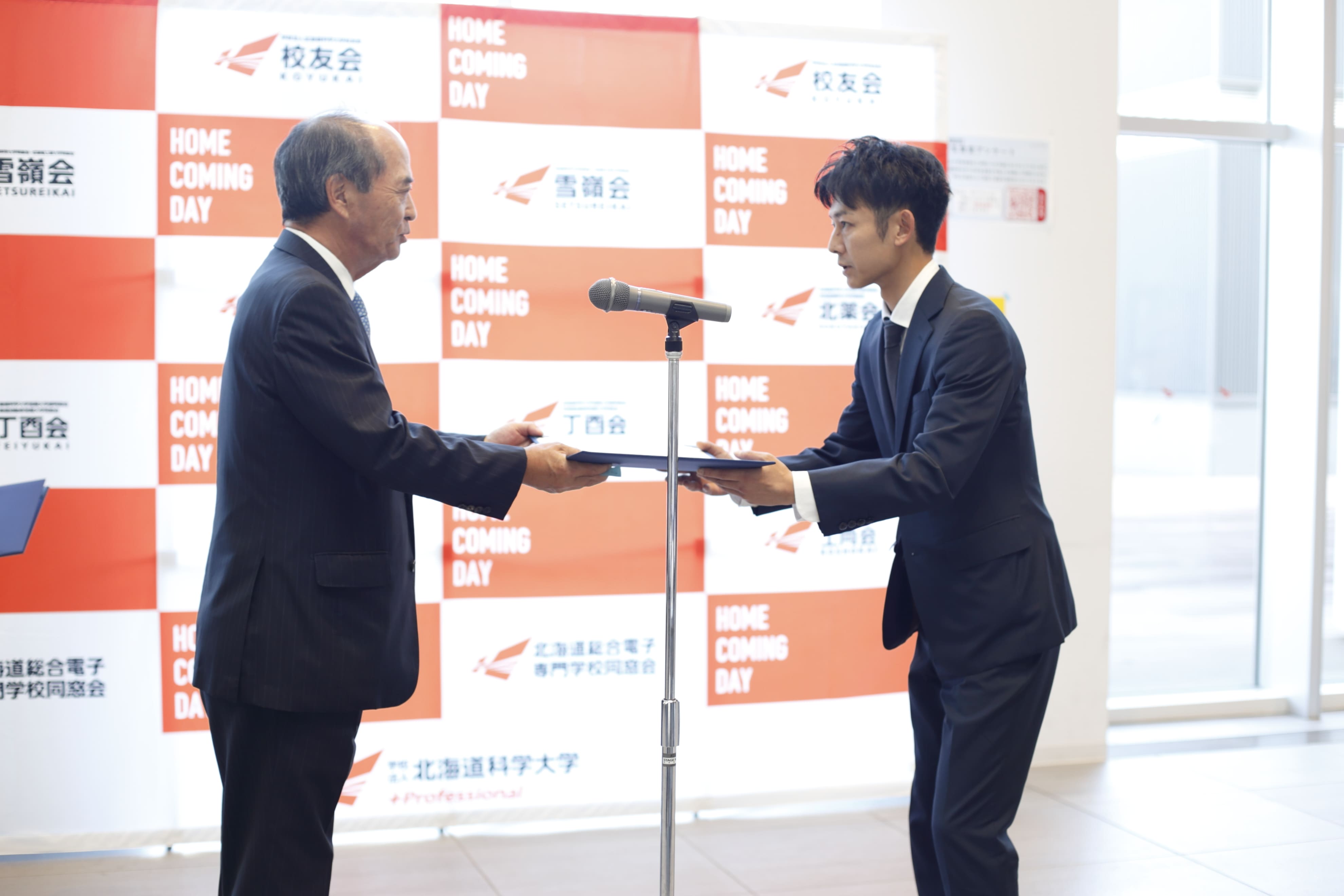 2023年度は、顕彰制度のご対象の皆様から、個人12名・3団体・14社のご出席を賜りました。また、ホームカミングデーと合同開催し、卒業生や教員OBの方々へ感謝の集いをご案内させていただいたことから、会場に用意しました100超の席を埋め尽くしたなかで、開催することができました。